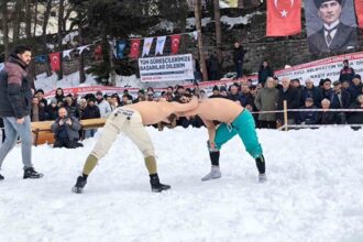 Artvin’in Şavşat ilçesi Veliköy’de bu yıl 28.’si düzenlenen ’Kar Üstü Karakucak Güreşleri’…