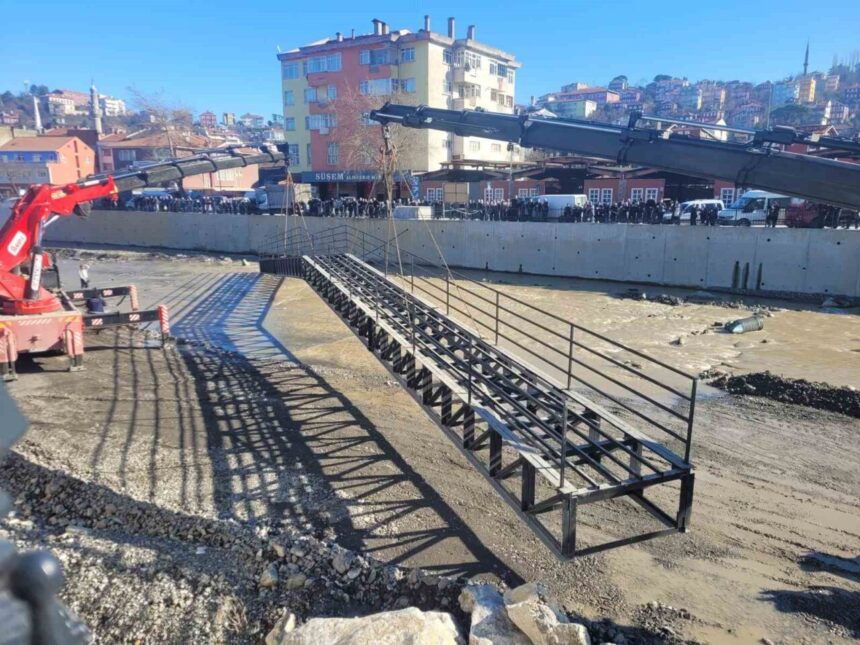 Reading: 2,5 yıl önce sel sularına kapılmıştı, ilçeyi birbirine bağlayan üst geçit yeniden yerine konuldu