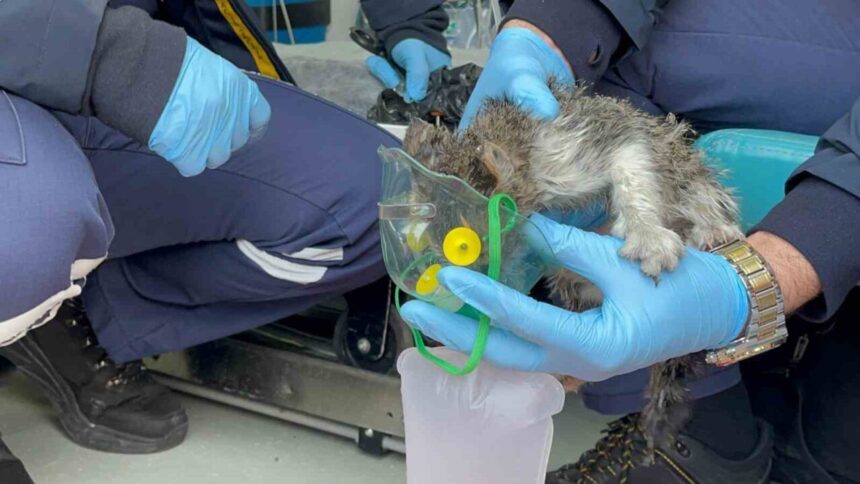 Melid Haber > Blog > Gündem > Alevlerin arasında kalan yavru kediyi itfaiye kurtardı, oksijenle hayata döndü