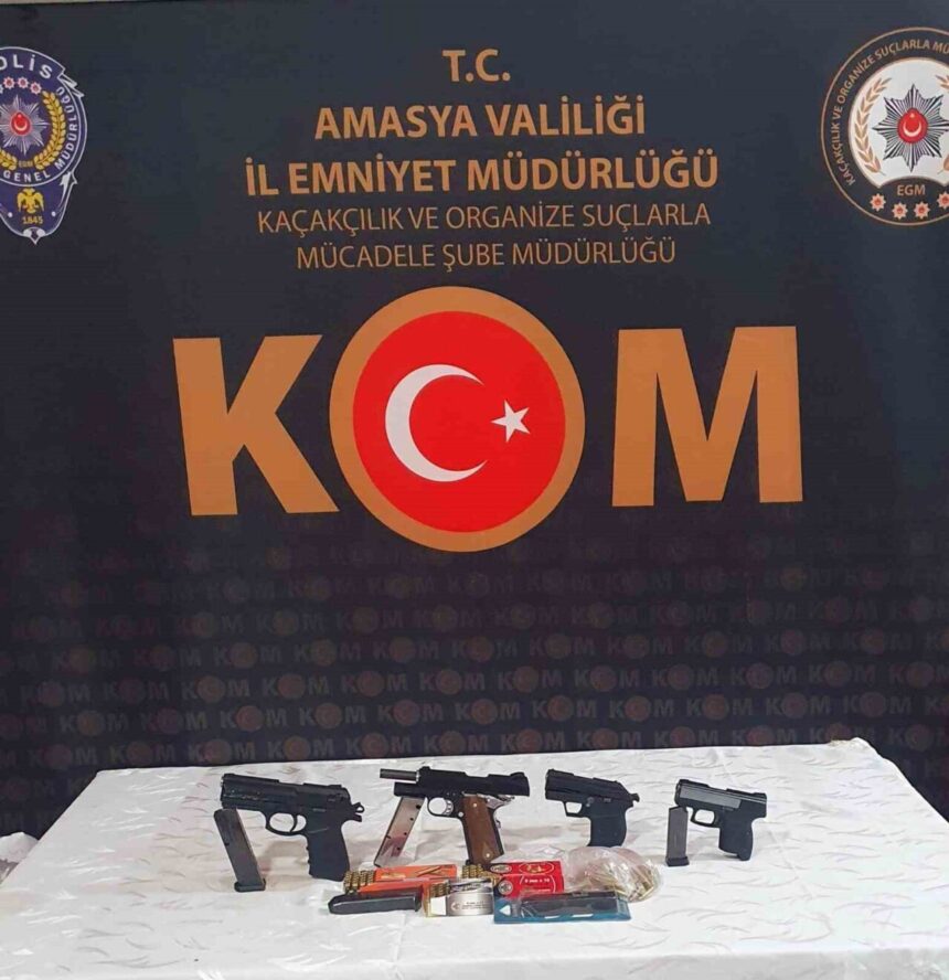 Amasya’da polisten silah operasyonu: 4 ruhsatsız tabanca ele geçirildi, 1 tutuklama