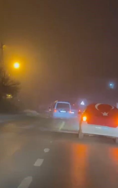İstanbul Başakşehir’de asker konvoyu düzenleyen bir grup ters şeride girip drift yaptı. O anlar cep telefonu kamerasıyla görüntülendi.