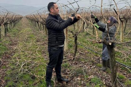 Manisa’nın Sarıgöl Ovasında artan maliyetlere çare arayan üreticiler bağ budama işlerini de…