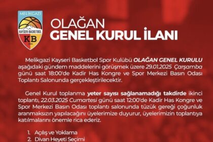 Melikgazi Kayseri Basketbol genel kurul yapılacak