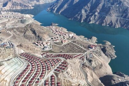 Yusufeli Barajı nedeniyle taşınan Tekkale Köyü, yeni yerleşim alanında göl manzaralı modern…