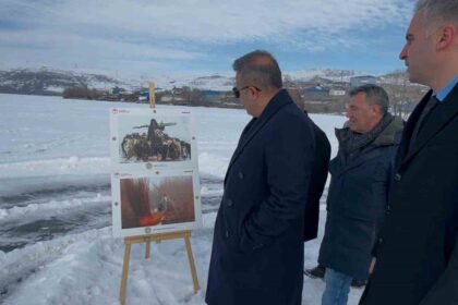 Ardahan İl Tarım ve Orman Müdürlüğü tarafından yüzeyi buzla kaplanan Çıldır Gölü…