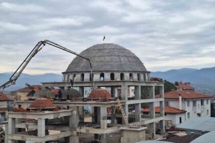 Denizli’nin Beyağaç ilçesinde yapımı süren Çarşı Camisi inşaatında kubbe kaplama ve kuppe…