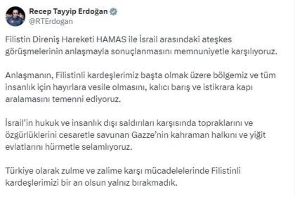 Cumhurbaşkanı Recep Tayyip Erdoğan, Hamas ile İsrail arasındaki ateşkes görüşmelerinin anlaşmayla sonuçlanmasını…