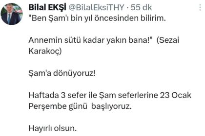 Türk Hava Yolları’nın (THY) Şam seferlerinin başlayacağı tarih belli oldu. THY’nin Şam’a…