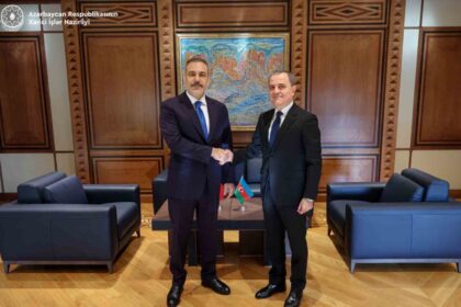 Dışişleri Bakanı Hakan Fidan, Bakü’de Azerbaycan Dışişleri Bakanı Ceyhun Bayramov ile bir…