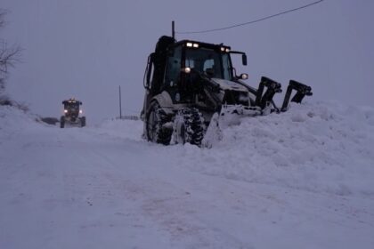Edirne’de kar kalınlığının 30 santimetreye ulaştığı köylerde yolları açık tutabilmek için çalışan…