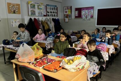 Manisa’nın Soma ilçesinde Ertuğrul Gazi İlkokulu öğrencileri, öğretmenleri eşliğinde gittikleri semt pazarında…