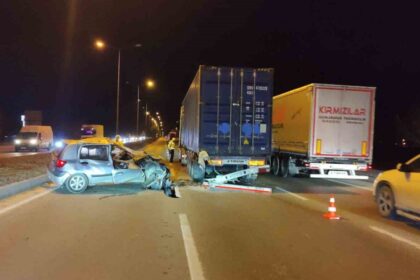 Yol ortasında arızalanan tıra arkadan otomobil çarptı, 1 kişi yaralandı