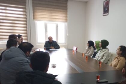 Çıldır İlçe Milli Eğitim Müdürü Gürbüz Yıldız, ilçeye yeni atanan öğretmenlerle bir…