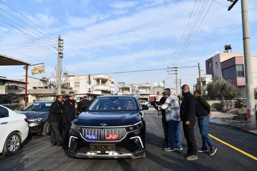 Hayırlı olsun yürüyüşünün sonunda Türkiye’nin yerli ve milli otomobili Togg’un direksiyonuna geçen Başkan İbrahim Çenet, “Osmaniye’mizin yolları her daim açık olsun” diyerek Hoca Ahmet Yesevi Sokak’ta test sürüşü gerçekleştirdi.
