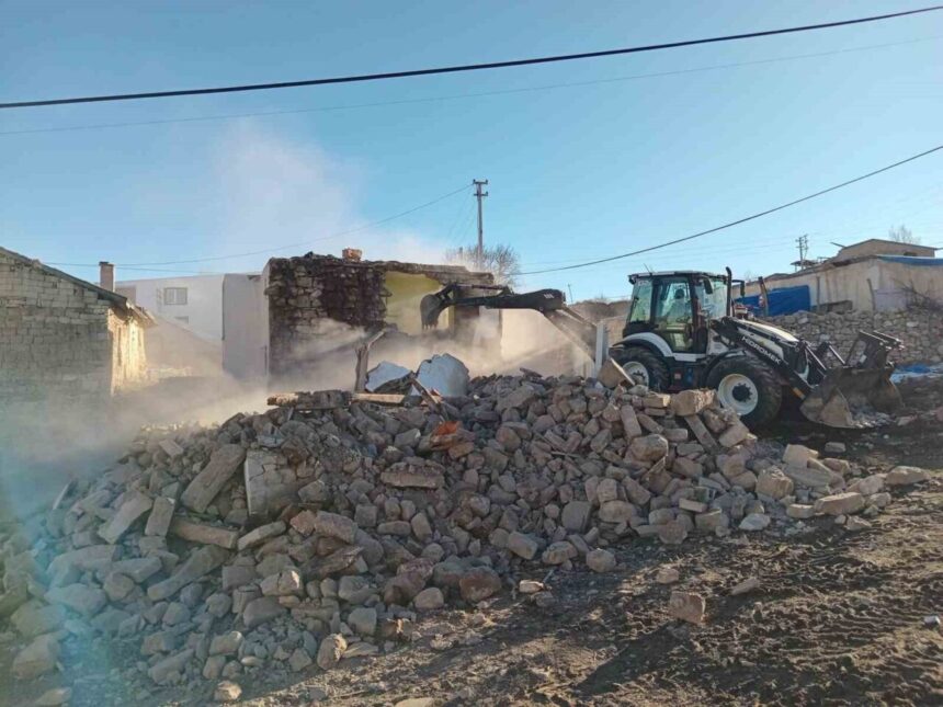 Kayseri’nin Bünyan ilçesinde harabe haldeki yapılar belediye ekiplerince yıkıldı.