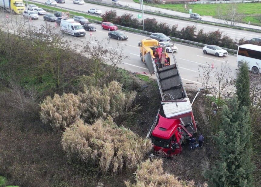 Bursa’da kontrolden çıkan tır refüje uçtu, otoban kitlendi