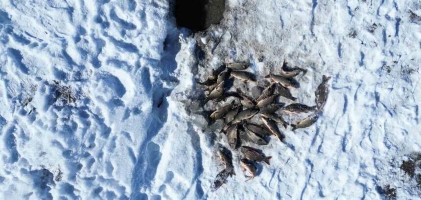 Buz tutan gölette ‘Eskimo’ usulü balık avı