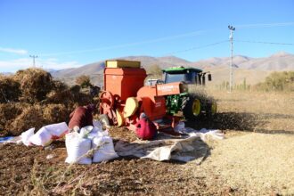 Malatya’nın Doğanşehir ilçesine bağlı Kurucaova Mahallesi’nde kuru fasulye hasadı başladı.