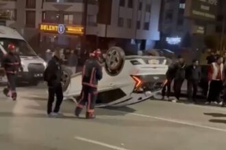 Altın Kayısı Bulvarı üzerinde yaşanan trafik kazasında bir otomobil takla attı, kazada…