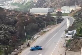 İzmir’in Bayraklı ilçesinde yolda drift atarak hem yol kenarındaki anne ve çocuğu…