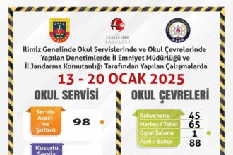 Eskişehir’de polis ve jandarma ekiplerince 81 okul servisi ve şoförü denetlenirken, okul…