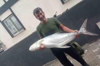 Amatör balıkçının 30 kiloluk balık heyecanı 13 bin TL’lik telefona mal oldu