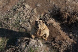 Dron gören ayının sevimli halleri tebessüm ettirdi