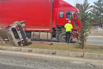 Malatya’da Tır İle Otomobil Çarpıştı: 1 Araç Yan Yattı