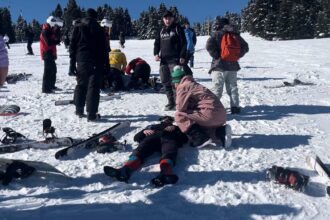 Uludağ’da acemi kayakçılar birbirine girdi: 3 yaralı…Sıcak anlar kamerada