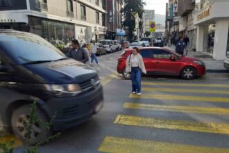 İzmir’in Konak ilçesinde yaya geçidinde yolun karşısına geçmek için bekleyen vatandaşlara yol…