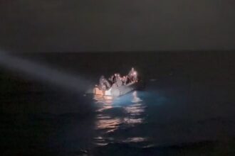 İzmir’in Çeşme ilçesi açıklarında motor arızası nedeniyle sürüklenen lastik bottaki 17’si çocuk…