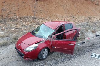 Doğanşehir’de etkili olan yağmur nedeniyle kayganlaşan yolda kontrolden çıkan otomobilin şarampole devrilmesi…