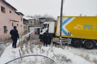 Malatya’da kar ve buzlanma nedeniyle kontrolden çıkan PTT kargo aracı yoldan çıktı,…