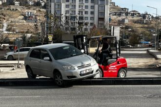 Malatya’da Refüje Çıkan Otomobil Forklift Operasyonu İle İndirildi