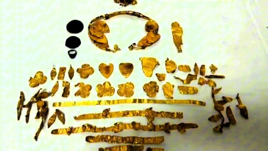 Denizli’de kültür ve tabiat varlığı kaçakçılığı yapan şahıslara yönelik olarak Sarayköy Cumhuriyet Başsavcılığı koordinesinde Denizli İl Jandarma Komutanlığı ekipleri tarafından icra edilen operasyonda, ellerinde tarihi eser bulunduran ve bunları satmaya çalıştığı öğrenilen bir şüpheli takibe alındı. Gerekli takibin tamamlanmasının ardından Jandarma KOM ve Sarayköy İlçe Jandarma Komutanlığı ekipleri tarafından gerçekleştirilen müşterek operasyonda, şüpheli S.Ç.’nin kullandığı otomobil kontrol noktasında durduruldu. Araçta yapılan aramada gözük kılıfları içerisine gizlemiş 70 gram ağırlığında altın yapraktan oluşan altın kral tacı parçaları ile 2 adet bronz sikke ve 1 adet gümüş yüzük ele geçirdi.