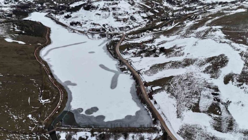 Tokat-Ordu sınırında yer alan Perşembe Yaylası’ndaki yapay gölet, soğuk hava şartları nedeniyle yüzeyini tamamen buzla kapladı. Yaz aylarında yeşilin tüm tonlarını barındıran gölet, kışın ise bembeyaz bir örtüyle doğaseverleri kendine hayran bırakıyor. Son günlerde etkili olan soğuk hava, göletin yüzeyinin tamamen donmasına neden oldu. Buz tutan göletin üzerine yürüyerek fotoğraf çektiren vatandaşlar, bu nadir doğal olayı ölümsüzleştirmek için bir araya geldi. Doğaseverler kışın ortasında bu manzaranın keyfini çıkararak, doğanın sunduğu benzersiz güzellikleri izledi. Yazın sakinliğiyle yeşilin bin bir tonuna ev sahipliği yapan gölet, kışın ise bembeyaz örtüsüyle farklı bir güzellik sunuyor. Her mevsim farklı bir atmosfer oluşturan Perşembe Yaylası, özellikle kış aylarında göletin üzerindeki buz tabakasıyla eşsiz bir görsel sunuyor.