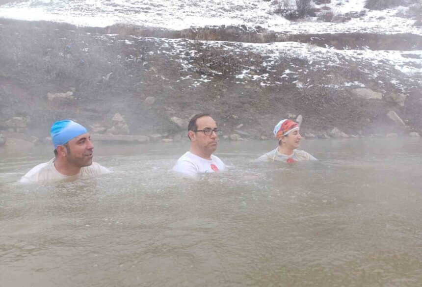 BİTLİS (İHA) – Van Gölü’ne dikkat çekmek için dondurucu havada suya giren Van Gölü Aktivistleri Derneği üyeleri, bugün de kaplıcada sıcak su keyfi yaşadı.