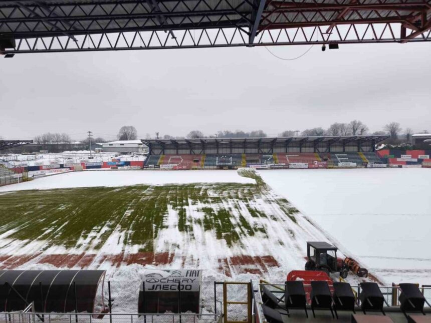 Yurdun büyük bir bölümünde etkili olan kar yağışı Düzce’de şehir stadını da kapladı. Düzce Gençlik ve Spor Müdürlüğüne bağlı ekipler 9 Şubat 2025 Pazar günü saat 14.00’da oynanacak olan Düzcespor ile 23 Elazığ FK maçı için Şıralık Şehir Stadyumu temizlenip maça hazır hale getiriliyor.