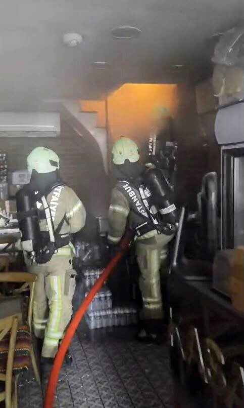 Eminönü Meydanı’nda bulunan bir restoranın dış cephesinde bilinmeyen bir nedenle yangın çıktı. Olay yerine itfaiye ve sağlık ekipleri sevk edildi. İhbar üzerine olay yerine gelen itfaiye ekipleri yangını söndürmek için çalışma başlattı. Restoranın içi itfaiye kamerası tarafından görüntülendi.