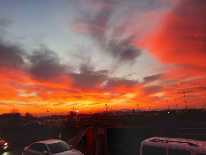 İstanbul’da gün doğumuyla birlikte kartpostallık görüntüler ortaya çıktı. Fatih’te güneşin yüzünü gösterdiği esnada beliren kızıllık gün doğumunu görsel şölene dönüştürdü. Gökyüzünün kızıla boyandığı anlar cep telefonu kamerasına yansıdı.