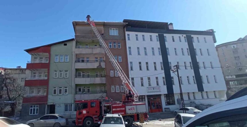 Hakkari’de soğuk hava nedeniyle çatılarda oluşan buz sarkıtları itfaiye ekipleri tarafından temizlendi.