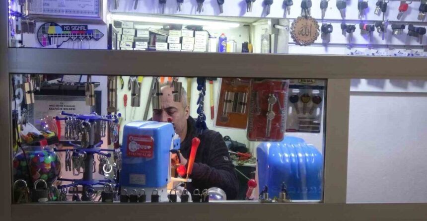 Sivas’ta anahtarcılık yapan Fatih Boztepe iki metrekarelik dükkânından kazandığı parayla iki çocuğunu okutuyor.