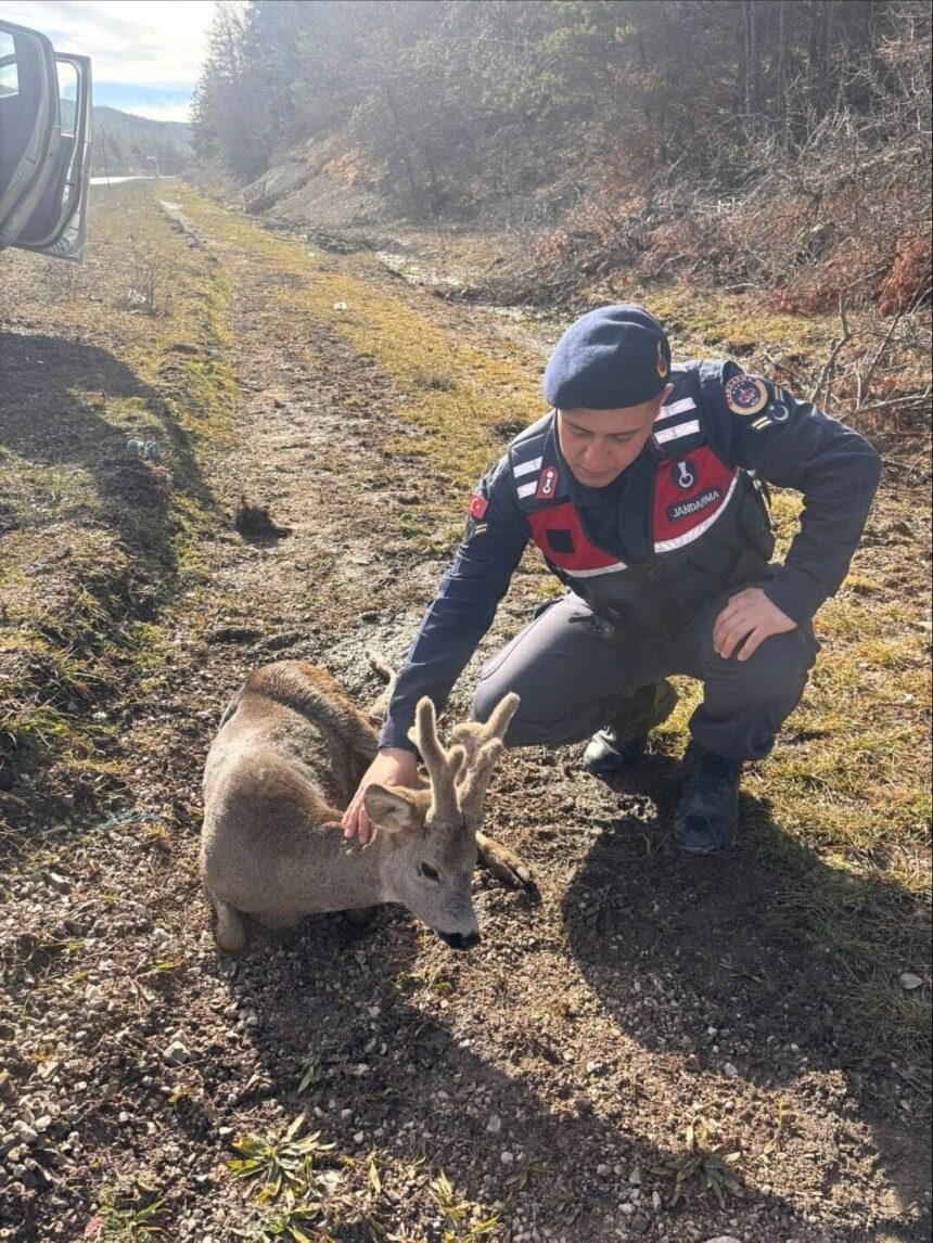 Kastamonu’nun Küre ilçesinde devriye atan jandarma ekiplerince yol kenarında yaralı halde bulunan 3 yaşlarındaki karaca, tedavisi yapılmak üzere Doğa Koruma ve Milli Parklar Müdürlüğüne teslim edildi. Karacanın, tedavisinin ardından doğaya salınacağı öğrenildi.