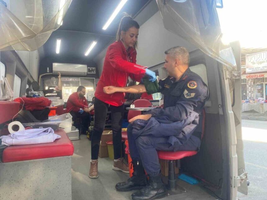 Aydın’ın Karpuzlu ilçesinde jandarma personelleri Kızılay’a kan bağışında bulundu.