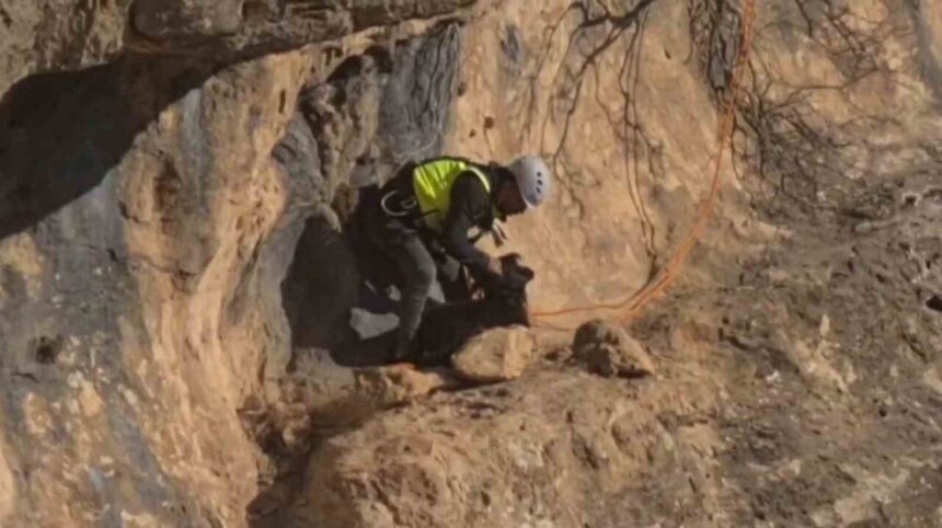 Kayalık alanda 6 gündür mahsur kalan keçi kurtarıldı