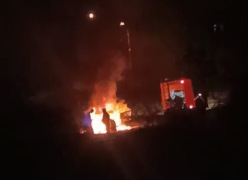 Gece yarısı boş arazide çıkan araç yangını, itfaiye ekiplerin müdahalesiyle kontrol altına alınırken araç küle döndü; içeride bulunan piknik tüpü son anda patlamadan çıkarıldı.