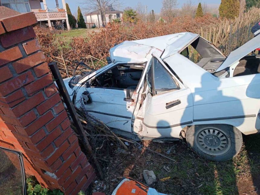 Sakarya’nın Akyazı ilçesinde sürücüsünün kontrolünden çıkan otomobil bahçe duvarına çarptı. Kazada sürücü yaralandı.