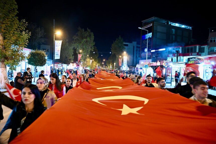 Malatya’da Cumhuriyet’in 102. yılı coşkuyla kutlandı. Vatandaşlar 70 metrelik dev Türk bayrağıyla yürüdü, 2. Ordu Bando Takımı eşliğinde kortej coşkuyu doruklara taşıdı.