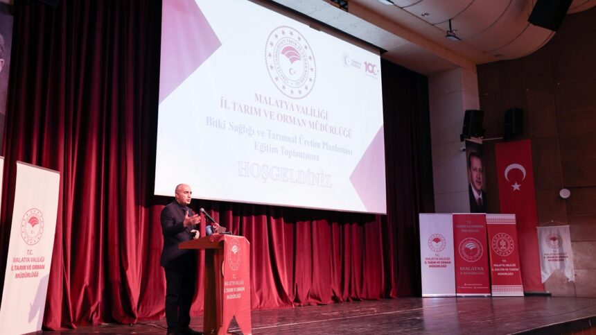 Malatya’da yeni üretim sezonu öncesi kayısı üreticileri ve çiftçilere yönelik “bitkisel üretim planlaması ve yeni destekleme modeli, kayısı bahçelerinde gübreleme, budama, hastalık ve zararlılarla mücadele, B-reçete sistemi ve TARSİM” konularında eğitim toplantısı düzenlendi.