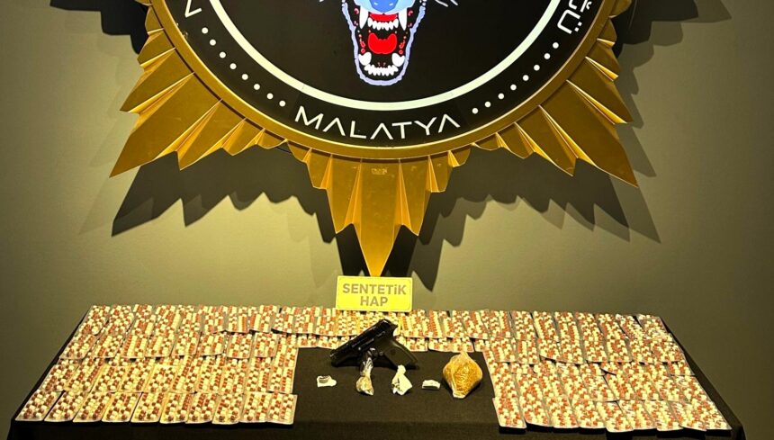 Malatya’da polis ekipleri tarafından gerçekleştirilen uyuşturucu ile mücadele çalışmaları kapsamında çeşitli uyuşturucu maddeler ile bir ruhsatsız tabanca ele geçirildi.
